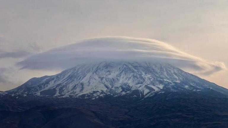 Türkiye’nin en yüksek zirvesi olan Ağrı Dağı’nda nadir görülen bir doğa olayı yaşandı. Fotoğraf sanatçısı Mehmet Kılıçoğlu, halk arasında “şapka bulutu” olarak bilinen “mercek bulutu (lenticular cloud)” adlı atmosferik olayı fotoğraflayarak ölümsüzleştirdi.