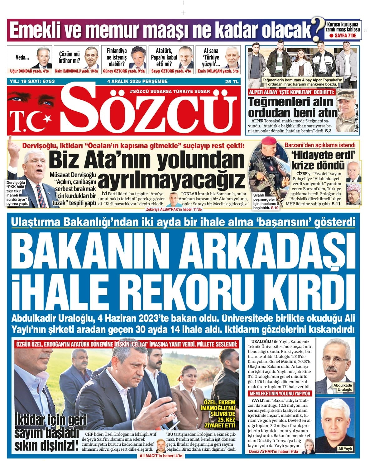 “Gazetenizin dünkü sayısında manşette yer verdiğiniz, “14 ayrı kamu ihalesi bakanın okul arkadaşına” başlıklı haberinizin soyut sonuçlarla kaleme alınmıştır. Haberde yer alan süreçlerin 4734 sayılı Kamu İhale Kanunu hükümleri doğrultusunda yürütülmüş olup yine haberde aktarılan iddialar gerçekleri yansıtmamaktadır.