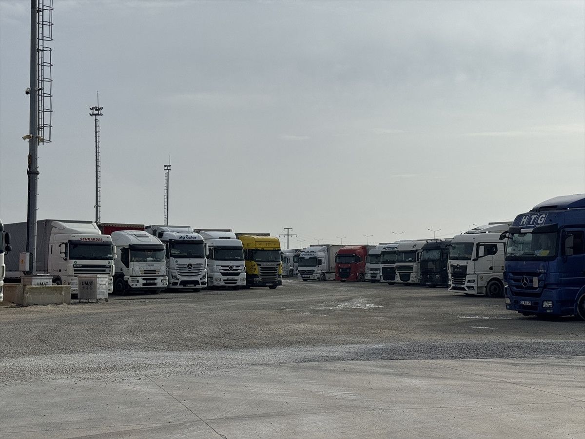 Kapıdan yalnızca bozulabilir gıda ürünleri ve ilaç gibi acil yük taşıyan tırların çıkışına izin veriliyor.