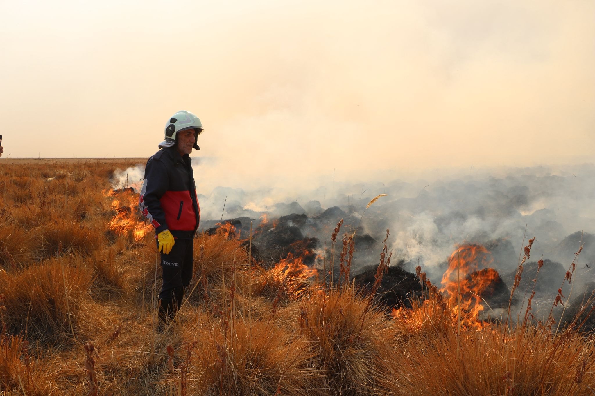 Hakkari’nin Yüksekova ilçesinde çok sayıda kuş türünün yaşam alanı olan Nehil Sazlığı’nda çıkan yangın, üçüncü gününde de sürüyor. İlçe merkezine 5 kilometre uzaklıktaki sazlıkta 3 gün önce henüz belirlenemeyen nedenle yangın çıktı. Rüzgarın etkisiyle kısa sürede büyüyen alevler, yaklaşık 3 kilometrelik alana yayıldı.