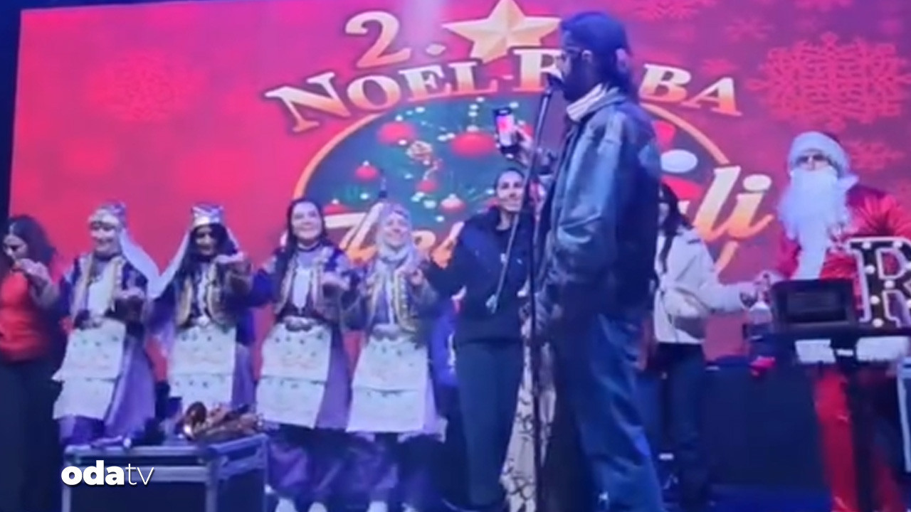 Konser esnasında sahnede Noel Baba kostümlü iki kişi ve folklör ekibinin halay çektiği görüldü.